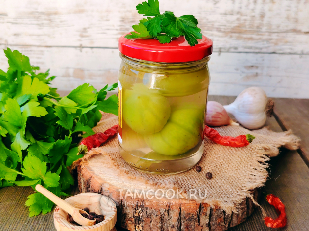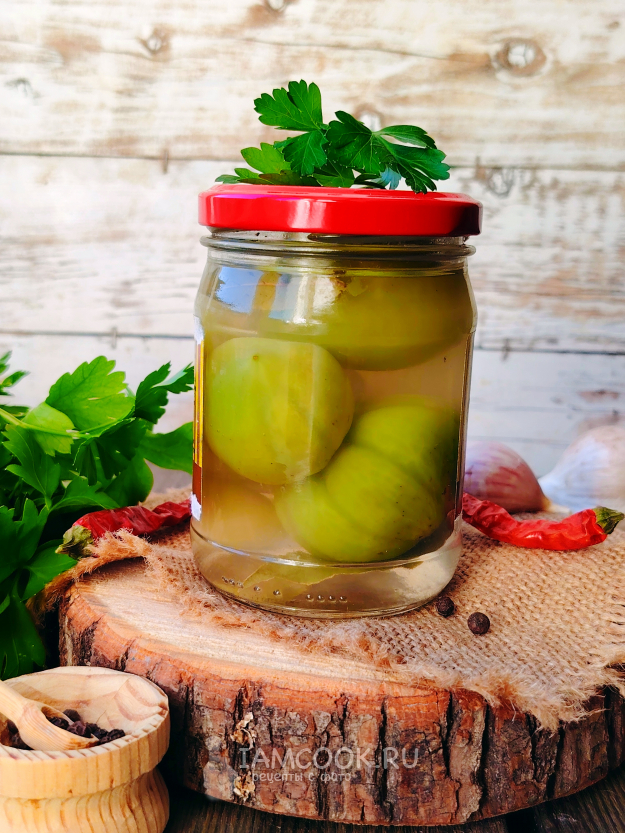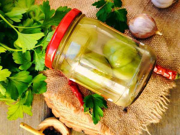 Острые зеленые помидоры без уксуса на зиму готовы.