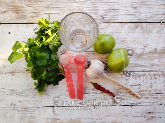 Собрать необходимые компоненты для приготовления армянчиков из зеленых помидоров на зиму.