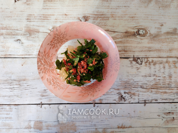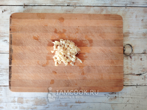 С перчиком поступить так же. Чтобы закуска получилась более острой, семена можно не удалять. Все составляющие для фарша поместить в посуду и перемешать.