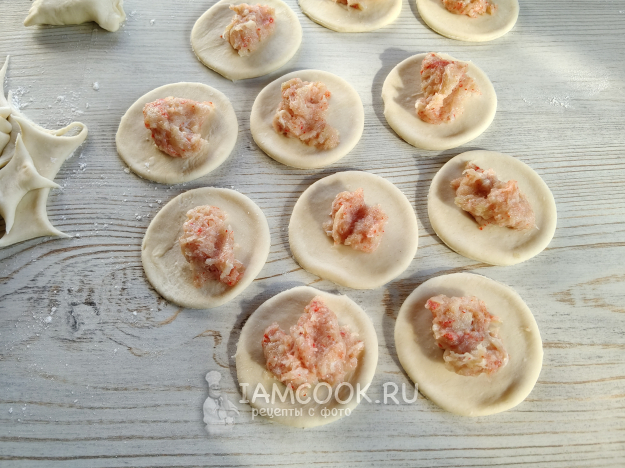 Тыльной стороной прижать края теста на расстоянии друг от друга. Выходит под вид цветочка.
