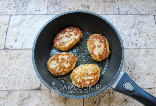 Жарьте с одной стороны до румяной корочки на огне чуть ниже среднего. Затем переверните на другую сторону, накройте сковороду крышкой, огонь немного убавьте и жарьте с другой стороны.