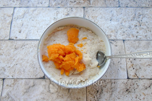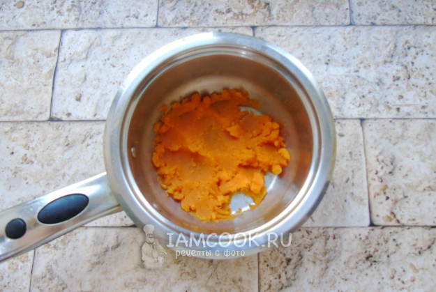 Когда батат станет мягким, воду из кастрюли слейте, а батат разомните в пюре.