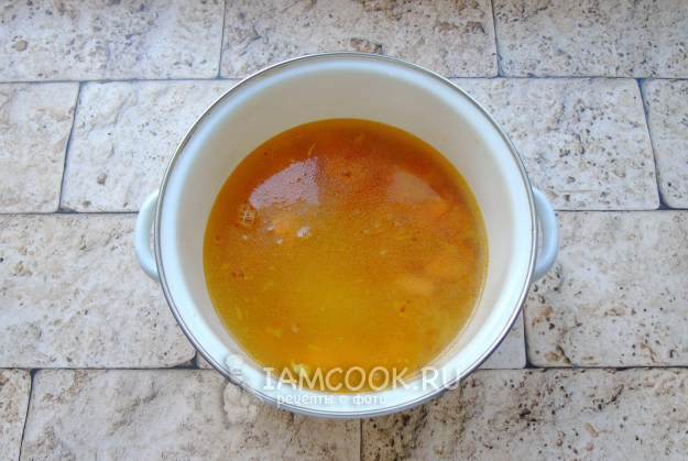 Посолите, поперчите по вкусу и варите суп до готовности всех ингредиентов.