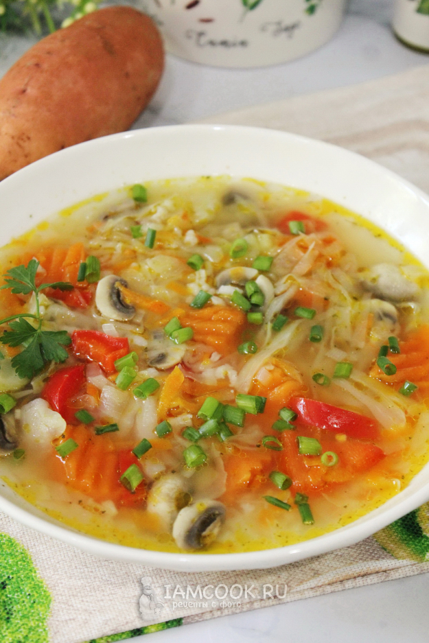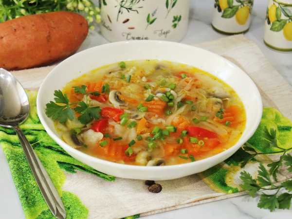 Ароматный, полезный и вкусный суп с бататом вместо картофеля готов.