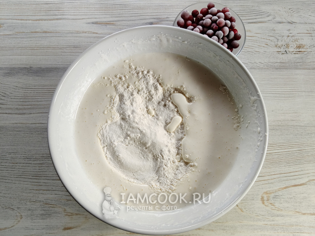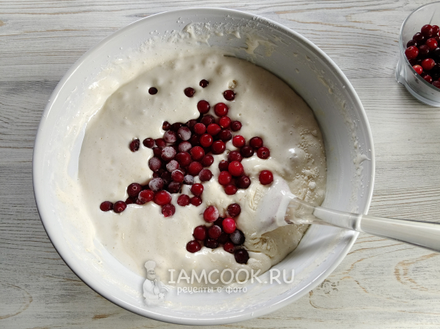 Начинать вымешивать лопаткой, в середине процесса добавить ягоду.