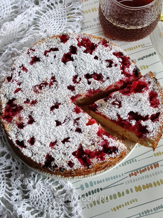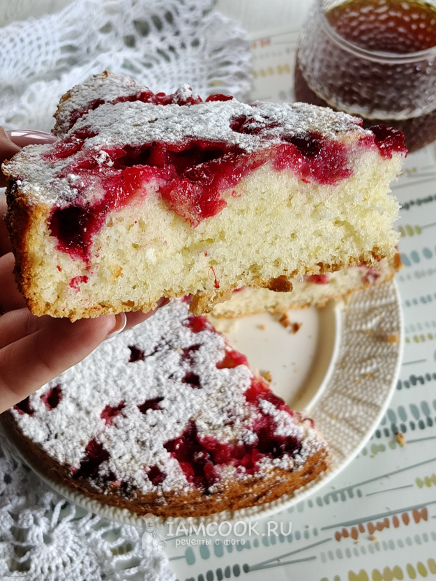 Бисквит с клюквой можно посыпать сахарной пудрой.
