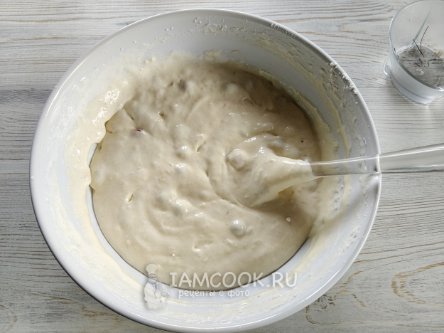 Вымешивать, пока не разойдётся вся сухая мука в тесте.