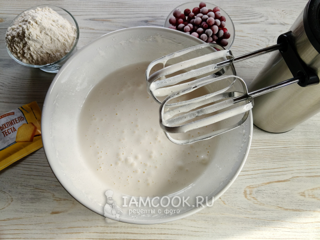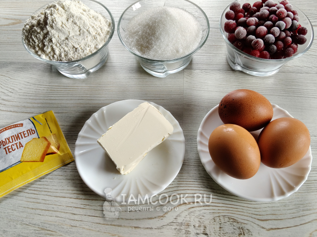 Для приготовления бисквита с клюквой в духовке возьмите необходимые ингредиенты.