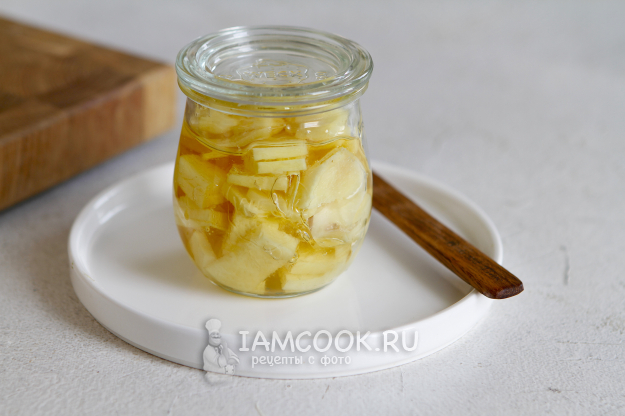 Ферментированный имбирь я добавляю в салаты, подаю к мясу, ем просто так. А мед подаю к чаю, также использую для заправки салатов.