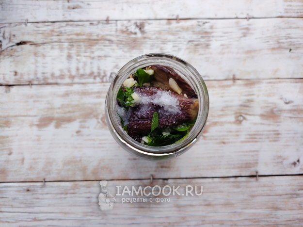 Закрыть банки крышками. Чтобы соль хорошо растворилась, не осталась на дне, банку можно покатать по столу, положив ее на бок. Затем перевернуть баночки вверх дном, укутать сверху одеялом, это послужит своего рода естественной стерилизацией. Дать остыть заготовке полностью, после чего ее можно убрать на хранение в прохладное место.