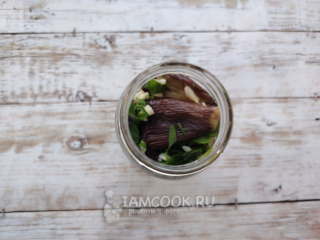Поместить баклажаны в банки, чтобы они разместились вертикально и плотно.