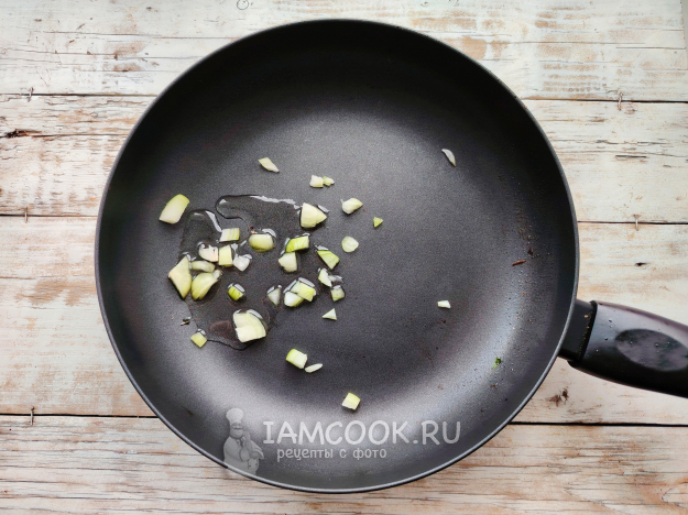 На сковороде разогреть масло. Отправить обжариваться лук.