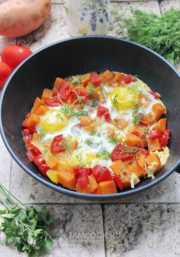 Яйца с бататом готовы. Сразу подавайте к столу.