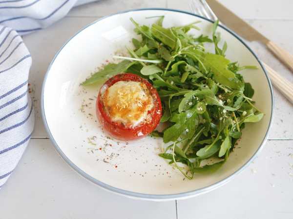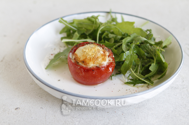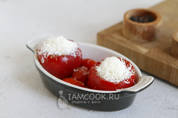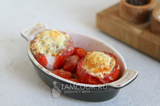 Запекайте яичницу с сыром в помидорах в духовке 15 минут при 200 градусах.