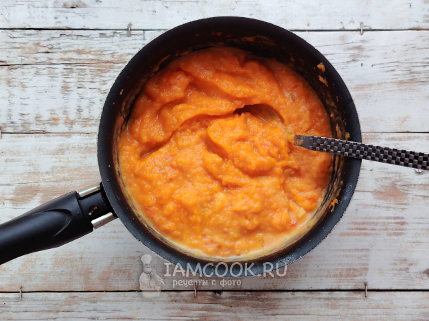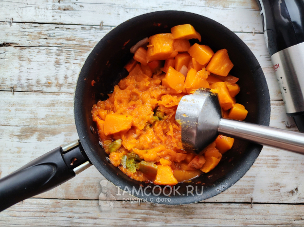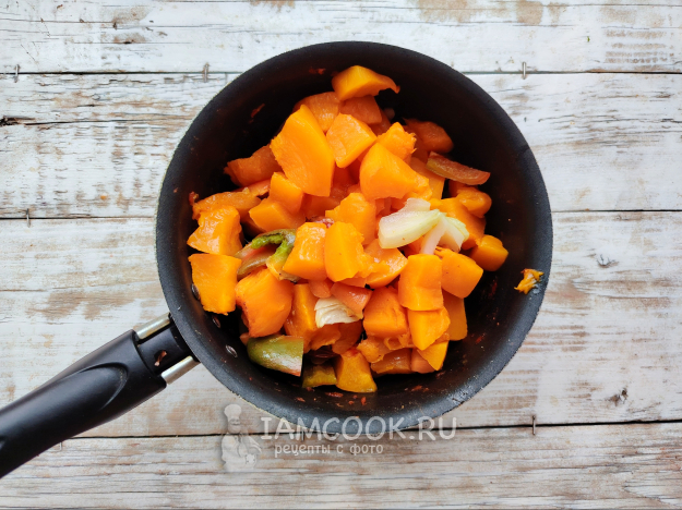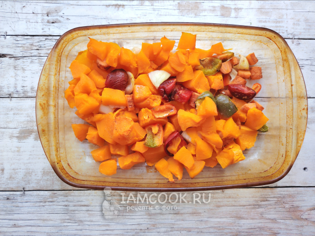 Запеченные овощи переложить в сотейник, добавить при необходимости специи, соль.