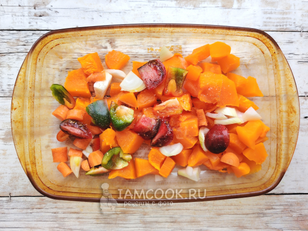 Запекать овощи в духовом шкафу, прогретом до 180 градусов, в течение 25 минут.
