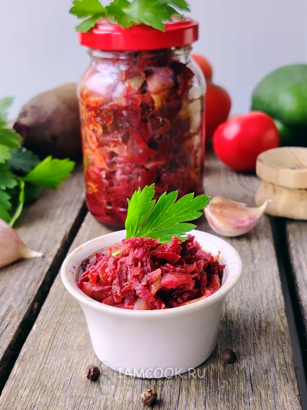Заготовка борща с помидорами и капустой на зиму завершена. Приятного аппетита!
