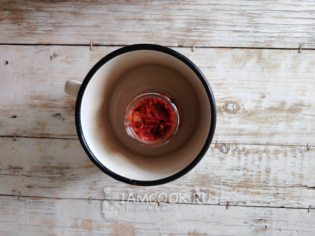 Простерилизовать наполненные баночки объемом 0,3-0,5 л на водяной бане в течение 10 минут.