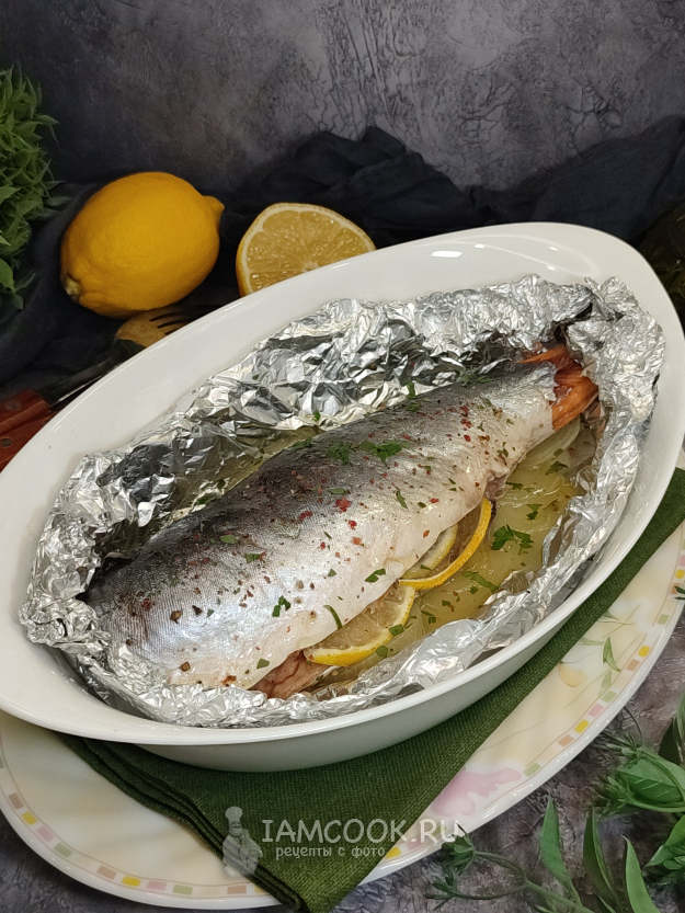 Запекайте гольца в фольге в духовке, разогретой до 180 градусов, до готовности, у меня голец маленький, мне хватило 25 минут. Вы ориентируйтесь на размеры рыбы и особенности вашей духовки.