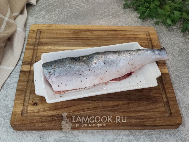 Вымытую и обсушенную рыбу присыпьте по вкусу солью и перцем со всех сторон.