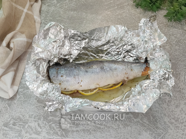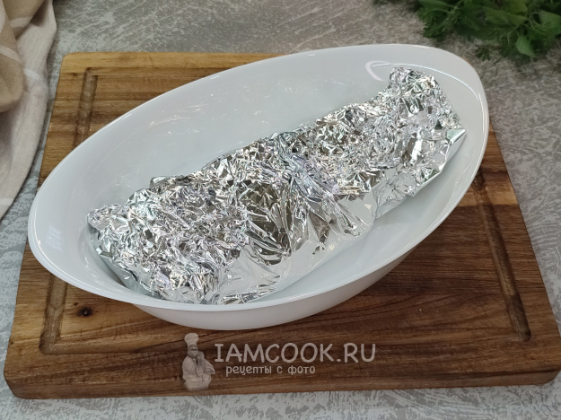 Заверните фольгу, переложите гольца в фольге в форму для запекания или противень.
