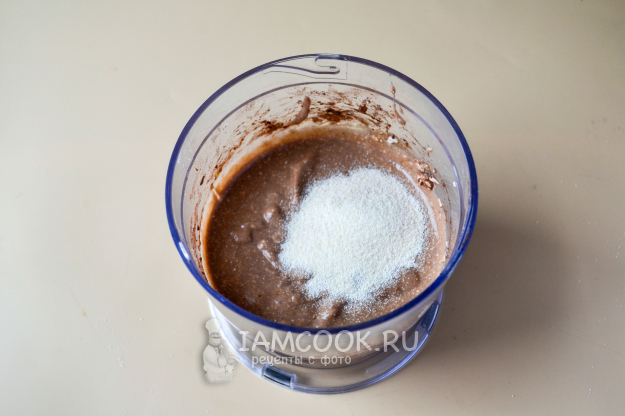Всыпьте манную крупу и перемешайте. Оставьте на 5-10 минут, чтобы манка слегка набухла.