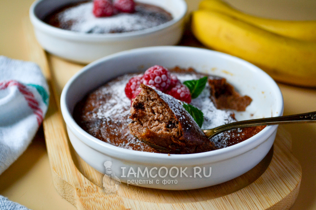 Готовая творожная запеканка с шоколадом и бананом должна хорошо держать форму, быть плотненькой, иметь румяную верхнюю корочку.