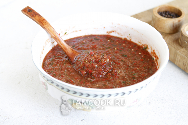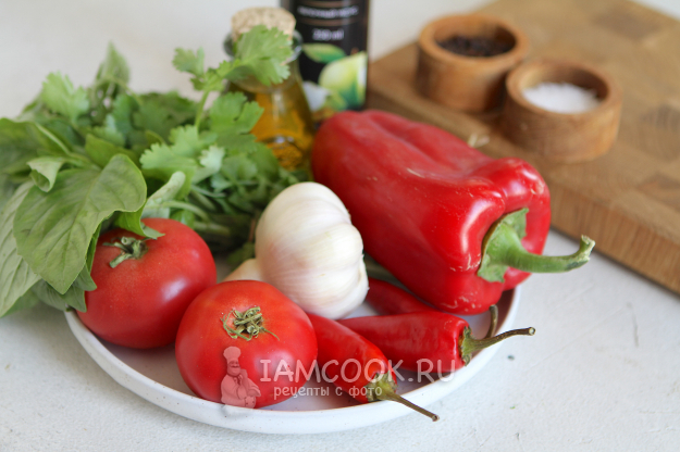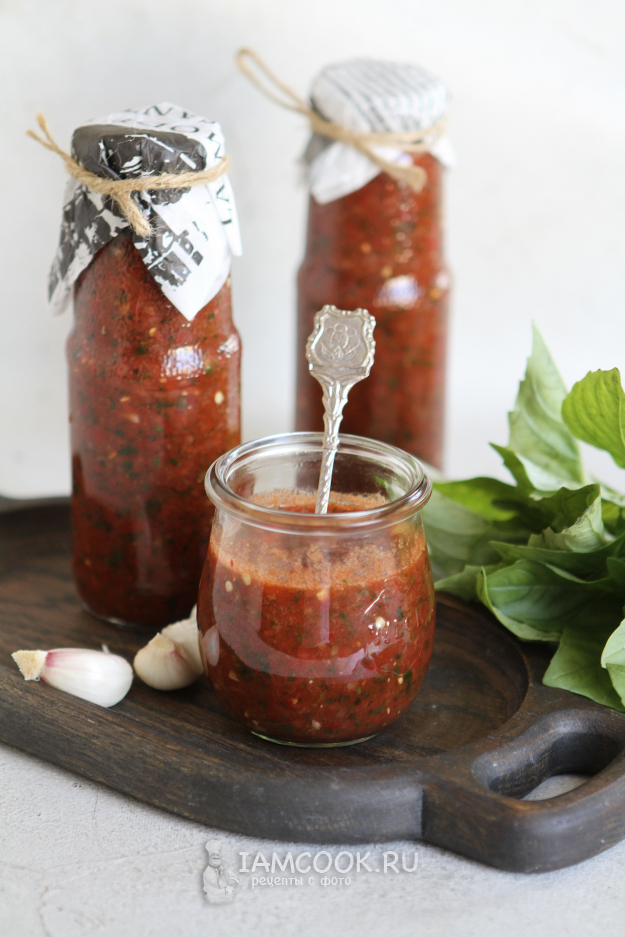 Продукты для приготовления соуса "Кобра" из помидоров на зиму - перед вами.