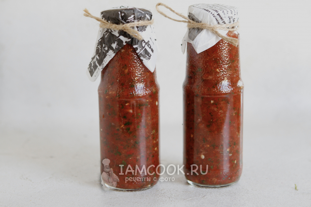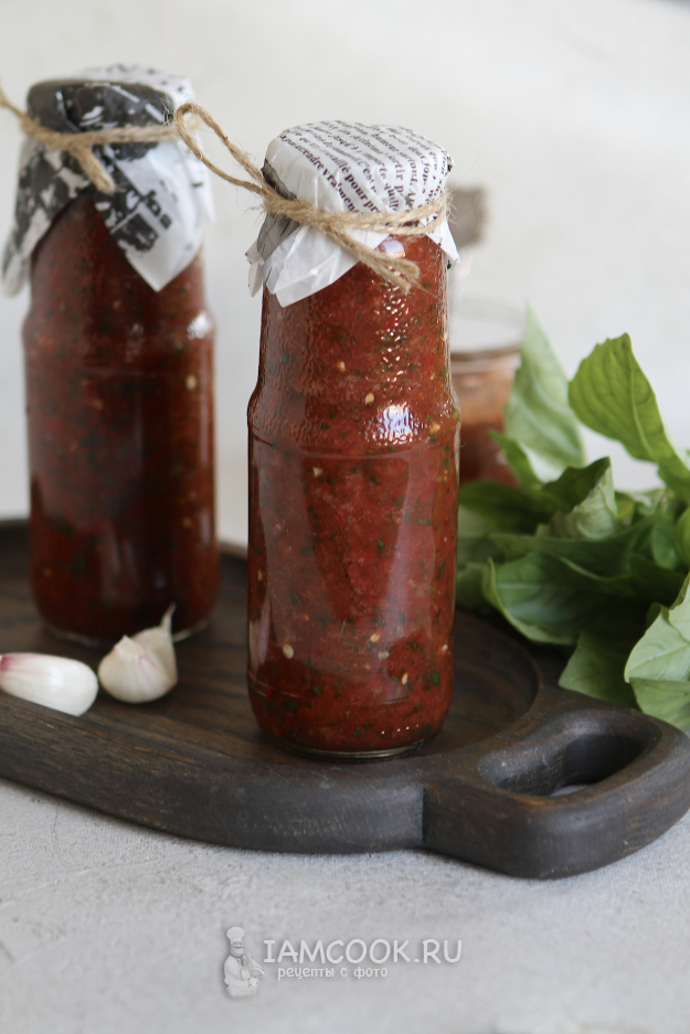 Подготовьте банки, хорошо их промойте (я банки не стерилизовала). Разлейте соус по банкам. Закройте крышками и уберите на хранение в холодильник.