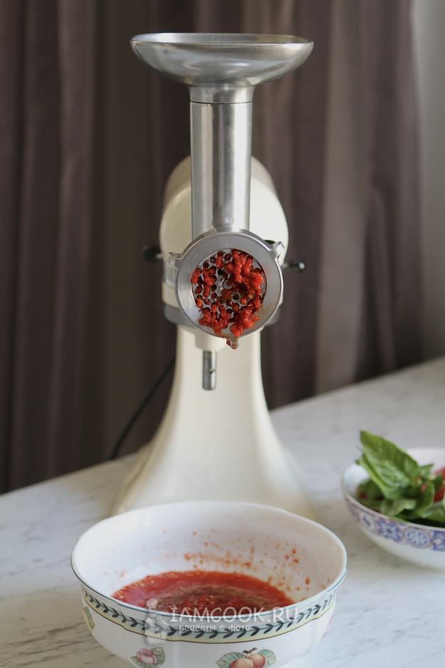 Перекручивая овощи, чередуйте их, чтобы мясорубка не забивалась.