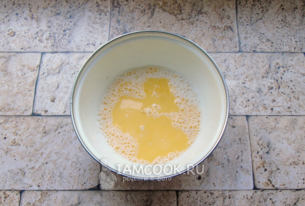 Сливочное масло растопите, немного охладите и добавьте в тесто.