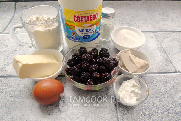 Соберите ингредиенты для приготовления сдобного рулета с ежевикой.