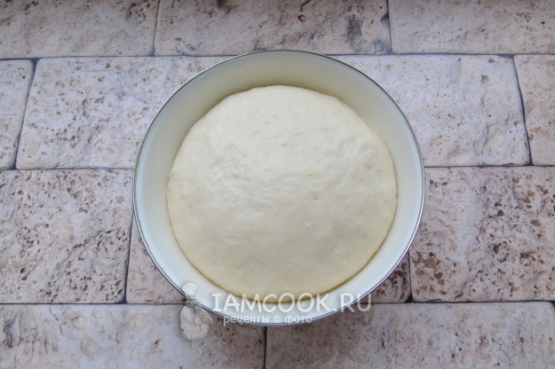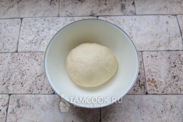 Замесите мягкое, эластичное тесто. Выложите в миску и накройте пищевой пленкой.