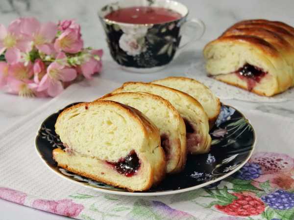 Вкусный, пышный рулет с ежевикой готов. Охладите его, нарежьте и подавайте к столу.