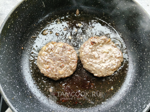 Котлеты пожарить на масле до прозрачного сока внутри.