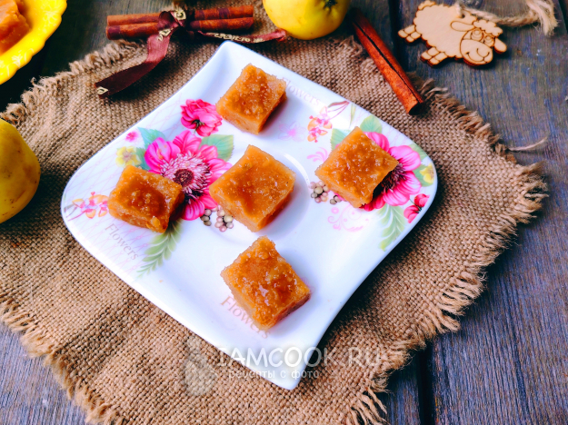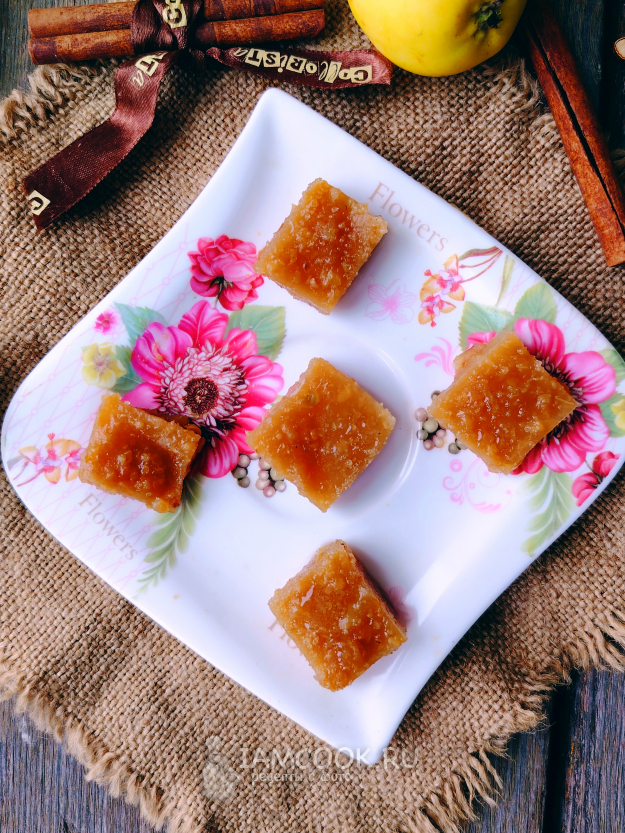Разрезать яблочный пластовой мармелад на кусочки, обвалять в сахаре по желанию и подать с чаем к столу. Хранить такое лакомство можно, завернув в пергамент, в холодильнике. Приятного аппетита!