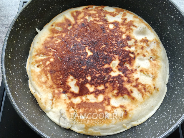 Аккуратно пройтись лопаткой по кругу сковороды, поддеть лопаткой и перевернуть.