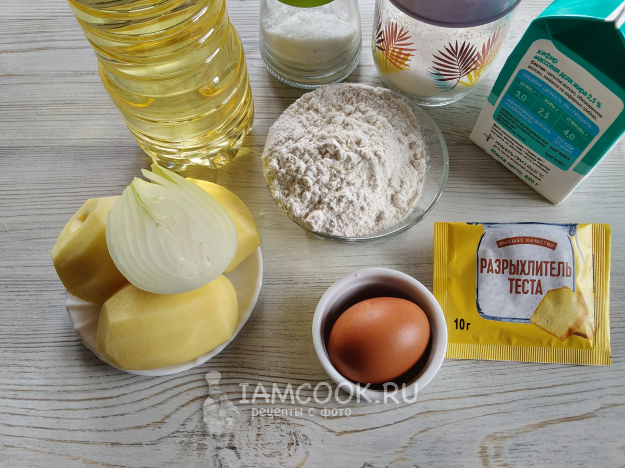 Заливной пирог с картошкой на сковороде готовить будем из таких ингредиентов.