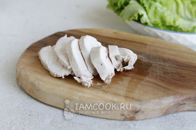 Куриную грудку нарежьте кусочками толщиной примерно 1 см.