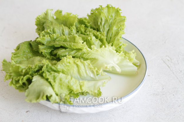 Подготовьте блюдо. Выложите в него листья салата целиком.