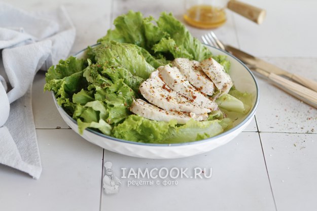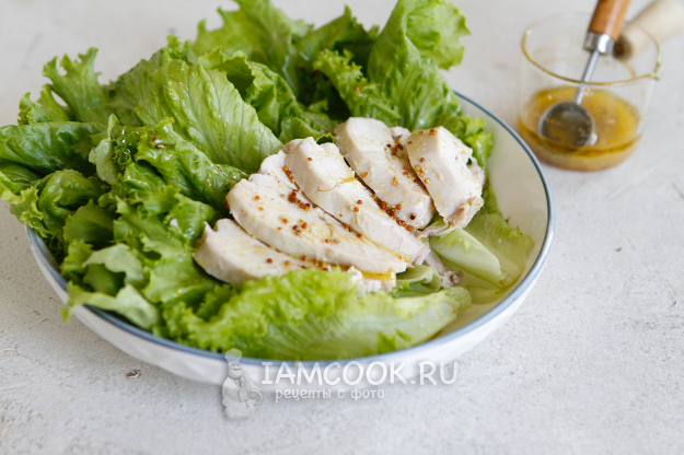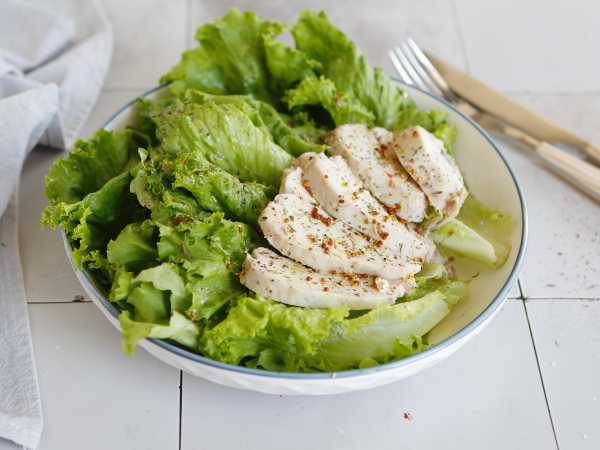 Посмотрите, как быстро можно приготовить салат латук с курицей.