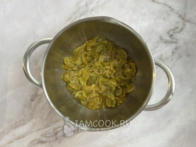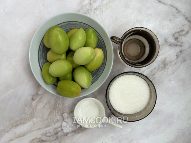 Соберите по списку все необходимые ингредиенты для приготовления варенья из зеленых помидоров на зиму.