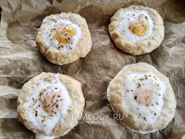 Разбить в углубления яйца (их лучше взять среднего размера или мелкие).
