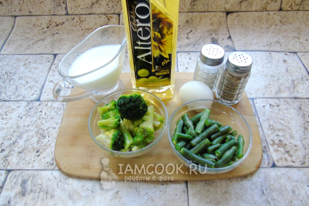 Соберите ингредиенты для приготовления брокколи со стручковой фасолью в духовке.