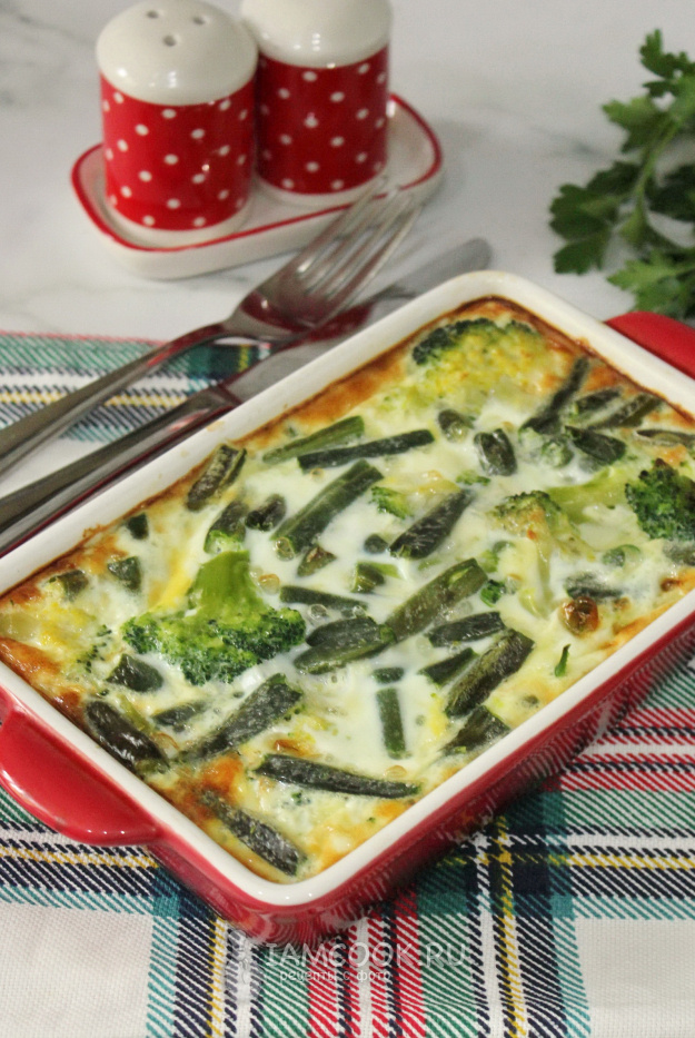 Запекайте брокколи со стручковой фасолью в духовке, разогретой до 180-185 градусов, 30-35 минут.