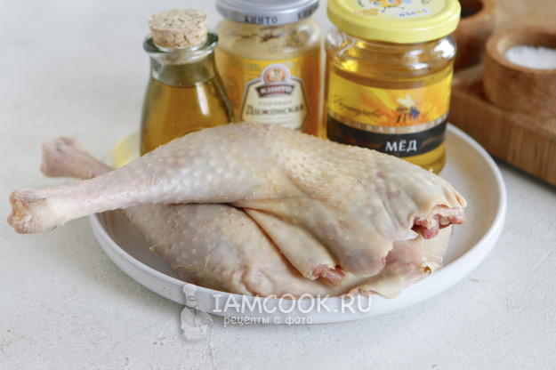 Подготовьте соус, в котором будут мариноваться ножки индейки. Я выбрала медово-горчичный. Соедините все ингредиенты и тщательно перемешайте.