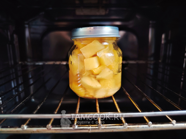 Прикрыть банки крышками и поставить в духовку, разогретую до 150 градусов, на 10 минут. Поскольку для приготовления варенья использовался мед (а не сахар) и другие добавки, лучше варенье простерилизовать дополнительно.