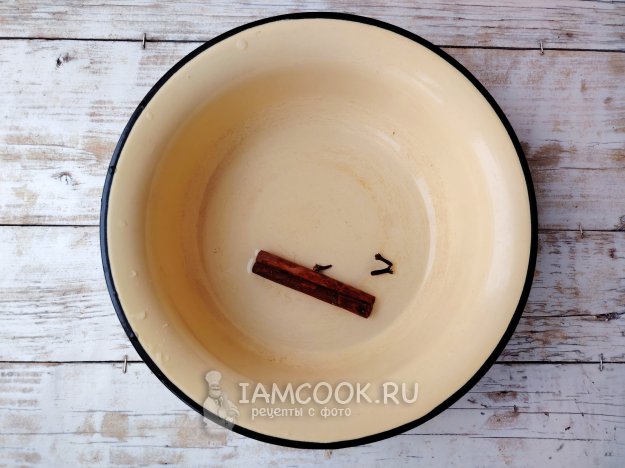 Когда маринад закипит, проварить его 5-7 минут на среднем огне, пока от маринада не начнет исходить приятный аромат, а сам он не приобретет легкий коричневый оттенок. Добавить мед, перемешать. Вынуть палочку корицы и гвоздику из посуды.