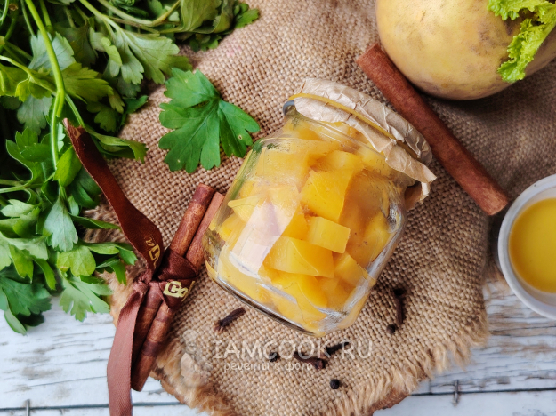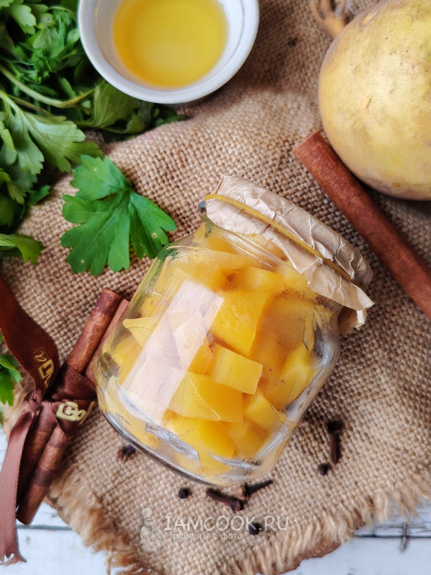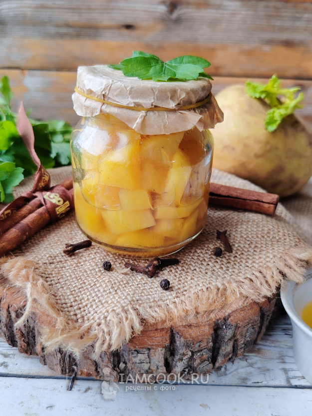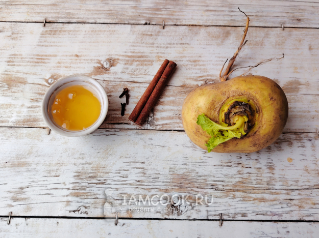 Собрать по списку продукты для приготовления варенья из репы на зиму. Репку для варенья лучше брать молодую, у которой еще нежная и сочная мякоть. После хранения она становится рыхлой и сухой внутри, поэтому заготовка лучше заниматься сразу после уборки урожая.