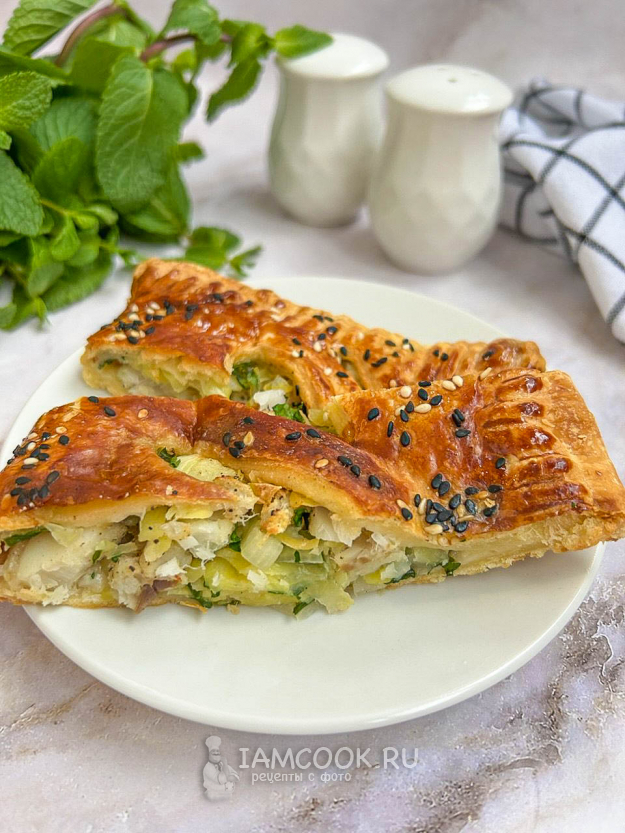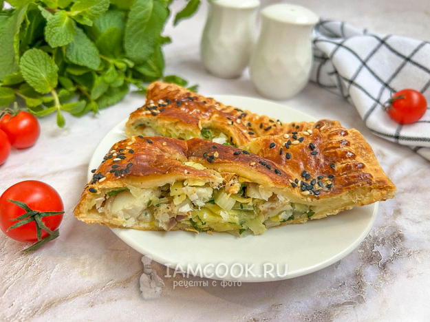 Соберите по списку все необходимые ингредиенты для приготовления пирога с треской из слоеного теста. Разморозьте слоёное тесто заранее согласно инструкции производителя.